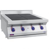 Модель оснащена четырьмя чугунными конфорками размером 300×300 мм. Каждая конфорка обладает мощностью 2,8 кВт и способна разогреваться до +480 °C всего за 25 минут. Такая производительность позволяет быстро приступать к приготовлению и эффективно распределять нагрузку между рабочими зонами.
