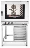 Шесть уровней под противни 600×400 мм позволяют готовить большие объемы продукции одновременно. Инжекционное пароувлажнение с регулировкой влажности от 0% до 100% помогает добиться оптимальной структуры у выпечки и горячих блюд. Простая электромеханическая панель управления делает эксплуатацию интуитивной и надежной даже в интенсивных условиях.