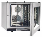 Закруглённые углы камеры облегчают уход, а нержавеющая сталь гарантирует долговечность. Дверца с двойным термостойким стеклом защищает персонал от ожогов, а встроенная подсветка обеспечивает полный контроль приготовление. Печь развивает температуру до +270 °С и оснащена аварийным терморегулятором на +320 °С. Мощность 10,6 кВт делает её надёжным помощником на загруженной профессиональной кухне.