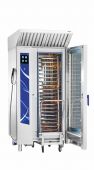 Аппарат оснащен тележкой-шпилькой ТП 20-1/1 под двадцать гастроемкостей GN 1/1. Продольная загрузка совместима также с GN 1/2 и GN 1/3, что делает устройство гибким для разных форматов производства. Сенсорная панель управления с TFT-экраном открывает доступ к 120 встроенным программам и возможности создания до 360 собственных рецептов. Каждая программа допускает до четырёх технологических этапов, а персональные настройки можно защитить паролем.