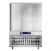 Аппарат поддерживает 5 уровней для гастроемкостей GN 1/1 или противней 600×400 мм. Использует хладагент R404A с массой 1,5 кг и питается от сети 230 В. Автоматическая оттайка упрощает обслуживание, а усиленная конструкция обеспечивает долгий срок службы.