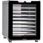 Рабочая камера шкафа поддерживает температуру в диапазоне от +30 до +85 °C, что позволяет настроить оптимальный режим для различных видов теста. Нагрев обеспечивается одним ТЭНом, при этом общая мощность устройства составляет всего 0,8 кВт. Шкаф разогревается до 40 °C за 20 минут, а для поддержания этой температуры расходует лишь 0,45 кВт·ч, что делает его экономичным и удобным в ежедневной эксплуатации.
