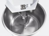 Ременно-цепной привод и электронная программируемая панель управления обеспечивают точность и простоту работы. Две скорости замеса позволяют оптимизировать структуру теста: спираль вращается на 120 и 240 об/мин, дежа — на 10 и 20 об/мин. Это способствует активному насыщению кислородом и формированию однородной клейковины. За час тестомес способен выдавать до 300 кг готовой массы, при средней продолжительности цикла не более 12 минут.
