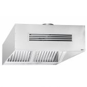 Корпус зонта выполнен из высококачественной аустенитной нержавеющей стали AISI 304, что гарантирует стойкость к коррозии, простоту обслуживания и длительный срок службы. Модель может устанавливаться как в настенном, так и в островном варианте, что делает её универсальной для различных планировок кухонных помещений.