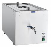 Производительность составляет 50 литров в час, объём кипятильного сосуда — 11 л, а сборника — 6 л. Устройство мощностью 6,6 кВт разогревает воду до кипения всего за 12 минут, оставаясь компактным при габаритах 355×685×391 мм и весе 17 кг.