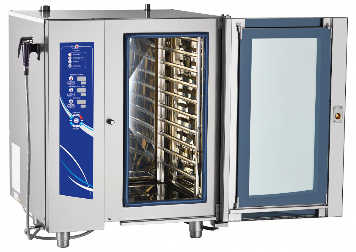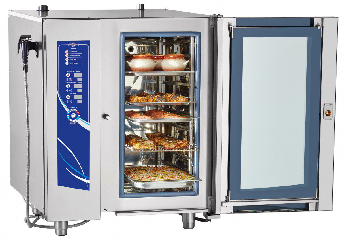 Камера оснащена десятью уровнями направляющих под гастроемкости GN 1/1, а продольная загрузка позволяет использовать емкости форматов GN 1/2 и GN 1/3. Мембранная панель управления на русском языке обеспечивает интуитивную настройку режимов, а встроенная автоматика поддерживает стабильность приготовления даже при интенсивной загрузке.