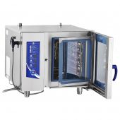 Пароконвектомат поддерживает запись до 110 пользовательских программ с возможностью задания до четырех этапов в каждой. Полуавтоматическая мойка, охлаждение слива, встроенный лоток для сбора конденсата и ручной душ упрощают уход за оборудованием. Низкое энергопотребление и нержавеющие лицевые панели делают модель долговечной и экономически выгодной для предприятий общепита.