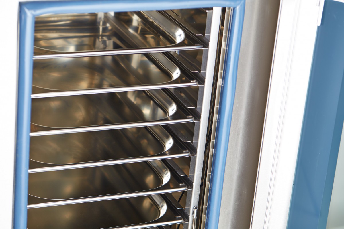 Прибор оборудован шестью уровнями направляющих под гастроемкости GN 1/1 и поддерживает продольную загрузку для форматов GN 1/2 и GN 1/3. Удобная русифицированная мембранная панель управления делает эксплуатацию интуитивной, а автоматика помогает быстро выводить устройство на рабочий режим, оптимизируя процесс приготовления.