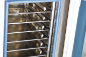 Для безопасной работы предусмотрена вентилируемая дверца с двойным термостойким остеклением, двухходовой механизм открытия и удобный замок «свободные руки». Внутреннее стекло открывается для удобства мойки, а уровень влагозащиты IPX5 позволяет промывать камеру под струей воды.
