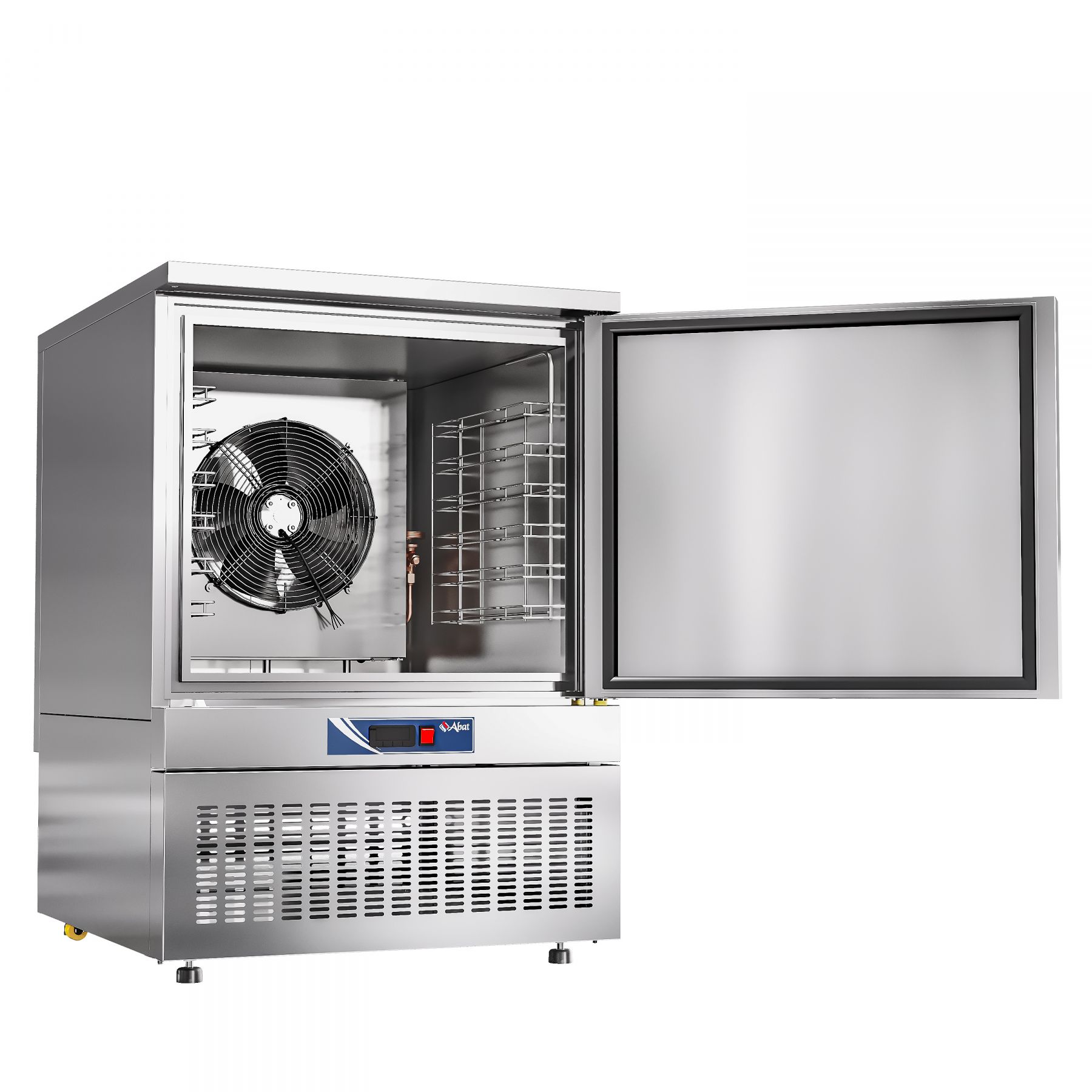 Отличительной особенностью аппаратов интенсивного охлаждения (шоковой заморозки) является использование в них системы эффективной принудительной вентиляции (воздухоохладителя с вентилятором, который обеспечивает равномерное распределение температуры внутри полезного объема камеры). Благодаря такой конструкции продукты, размещенные на полках, быстро охлаждаются в потоке холодного воздуха.