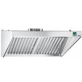 Корпус зонта выполнен полностью из высококачественной нержавеющей стали AISI 304, устойчивой к коррозии и температурным перепадам. Конструкция позволяет устанавливать его как у стены, так и в островном исполнении — в зависимости от планировки кухни и особенностей технологического процесса.