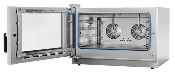 Четыре уровня для противней EN 1/1 и электронная панель управления делают печь удобной в ежедневной эксплуатации. Инжекционное пароувлажнение с точной регулировкой влажности от 0% до 100% помогает добиться идеальной текстуры выпечки и готовых блюд. Возможность записи до 110 программ по 4 этапа каждая упрощает повторяющиеся процессы.