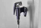 Дверца оснащена двойным термостойким остеклением, внутренним открывающимся стеклом и механизмом «свободные руки», упрощающим закрытие. Двухходовая система предотвращает выброс горячего пара на оператора. Защита IPX5 позволяет промывать камеру под струей воды, а встроенный лоток исключает попадание конденсата на пол. Предусмотрены ручной душ, охлаждение слива и шесть автоматических режимов мойки с использованием жидких и таблетированных средств.